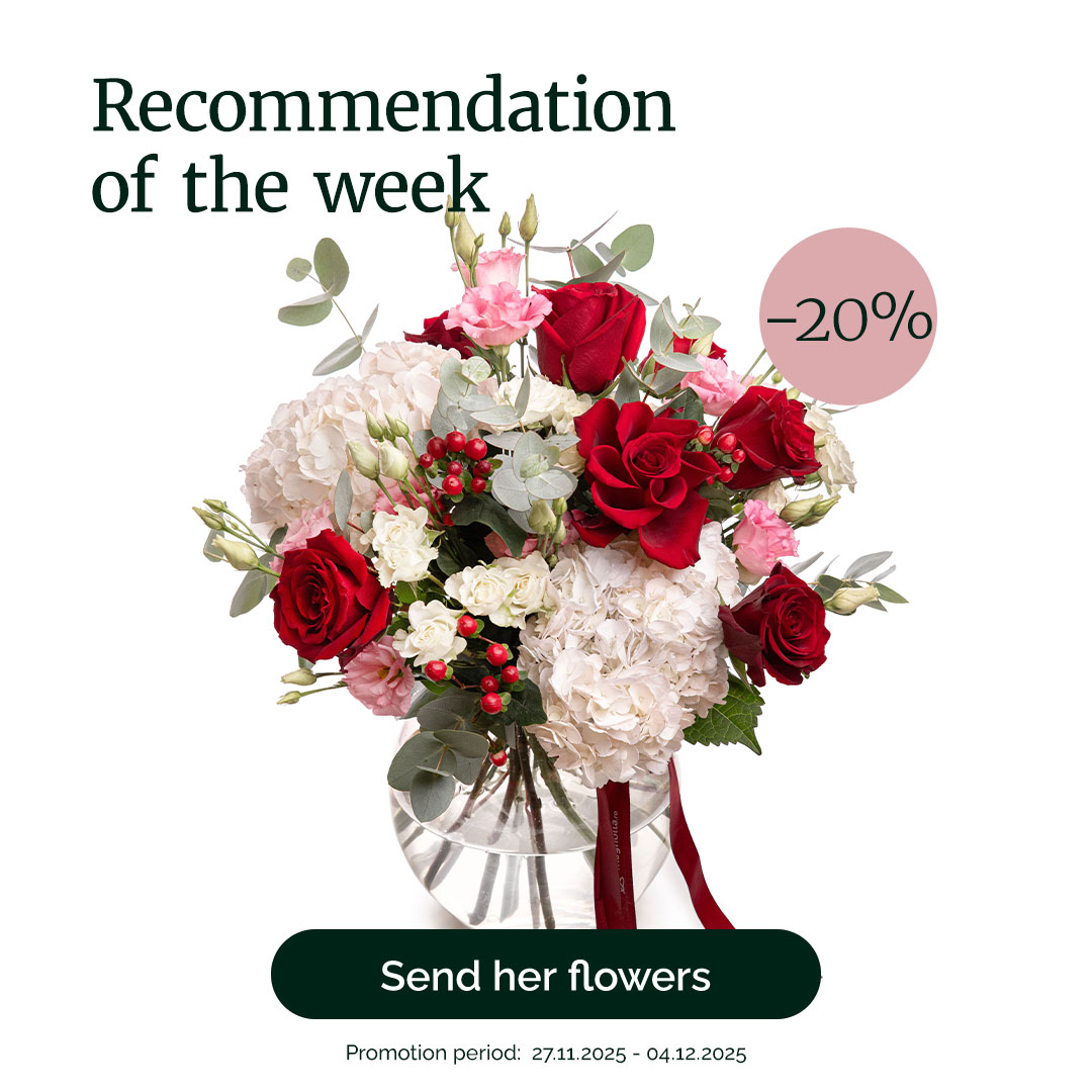 We deliver flowers every day of the week except holidays. For deliveries in the same day as the order the time limit is 17:00. ** For all details regarding online flower orders in Baleni or flower home delivery in Baleni please contact us either by phone or by email or you can see the "Buy" or "Pay" sections.