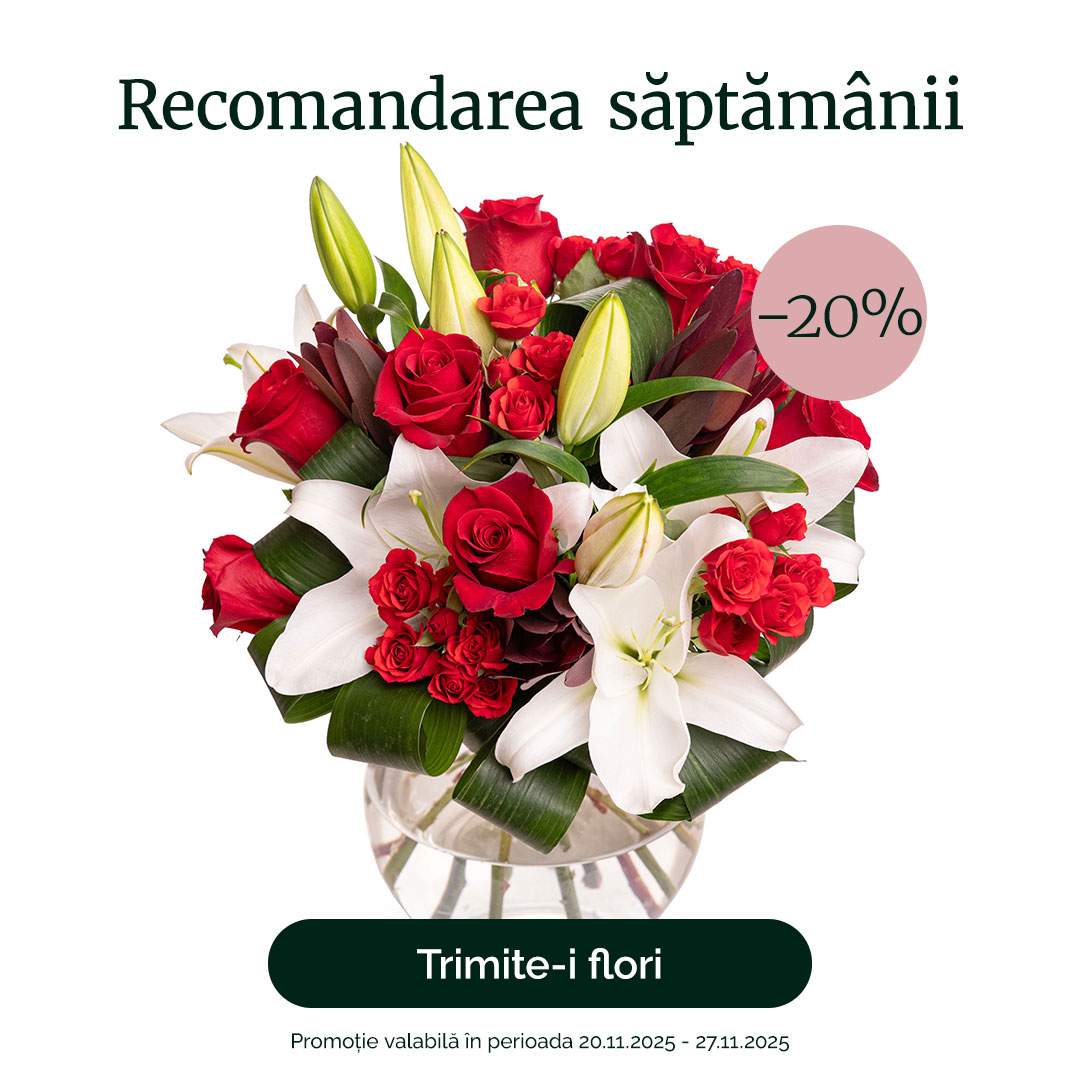 Comandă flori online cu livrare în orice zi a săptămânii! Cel mai prompt serviciu de livrare flori la domiciliu, din cea mai creativă florărie online! Garantăm livrarea oriunde în România, în 2-4 ore. Ora limită de plasare a comenzilor online este ora 17:30. Cei mai inspirați artiști florali vă oferă buchete de flori, aranjamente florale și cadouri deosebite, create în cea mai dedicată florărie online. Pentru orice detalii legate de comenzi flori online în Lugojel sau livrare flori la domiciliu în Lugojel vă rugăm să ne contactați, fie telefonic, fie prin chat online, fie prin email la adresa .